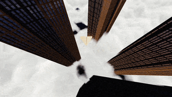 Skyscrapers reach out to the heavens, the streets below unseeable through the clouds, the air is light up here but you're lighter, just a tiny paper plane gliding forever.